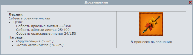 - Оранжевый листок - за участие в Битве Октября; из Осеннего Короба; за обмен у Ёжика.